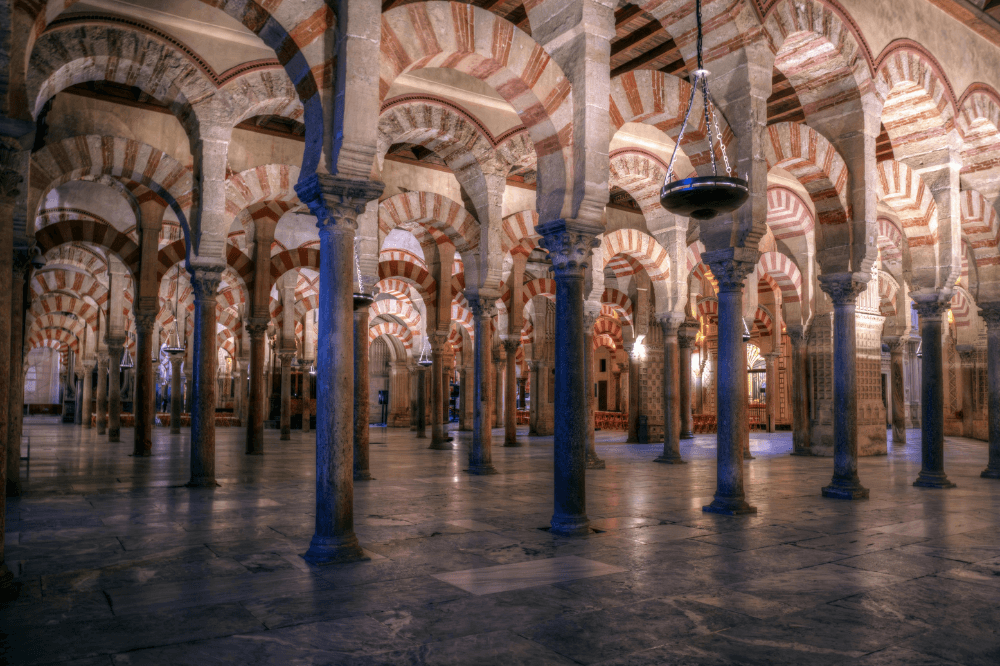 It represents a unique synthesis between Islamic and Christian art. The forest of columns and horseshoe arches of the former mosque coexists with a Renaissance basilica built in its center after the Christian conquest.