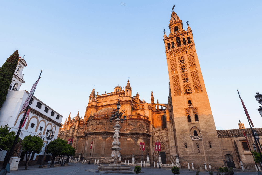 It is the largest Gothic cathedral in the world and was built on the site of the former Almohad mosque. From that era, it preserves the Patio de los Naranjos (Courtyard of the Orange Trees) and the Giralda, the old minaret converted into a bell tower.