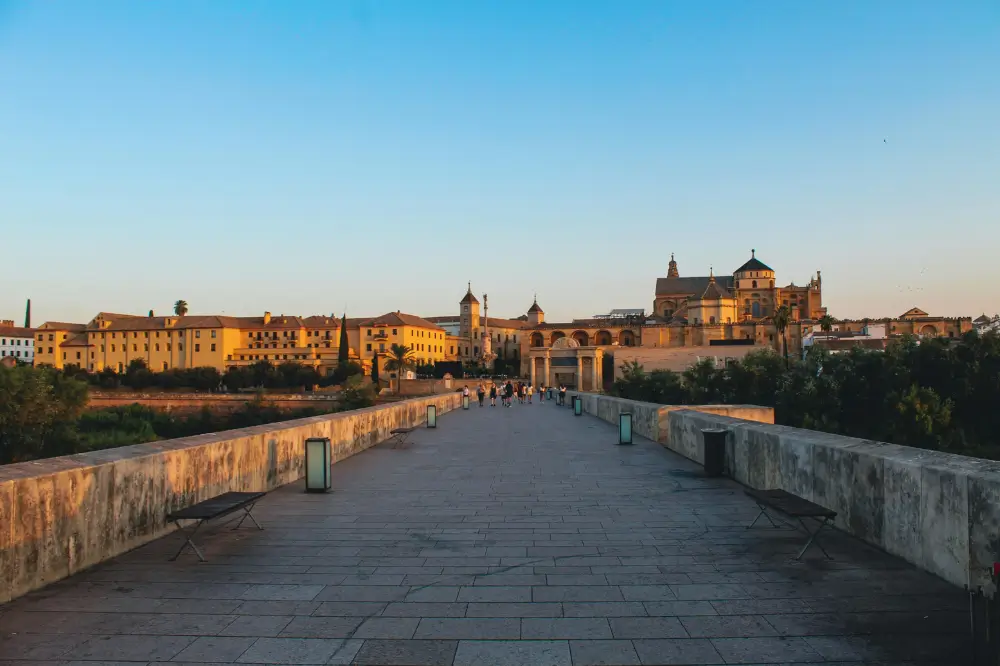 The most complete image is obtained by crossing the Roman Bridge to the Torre de la Calahorra. From there, the silhouette of the Mosque-Cathedral stands out against the city’s skyline.